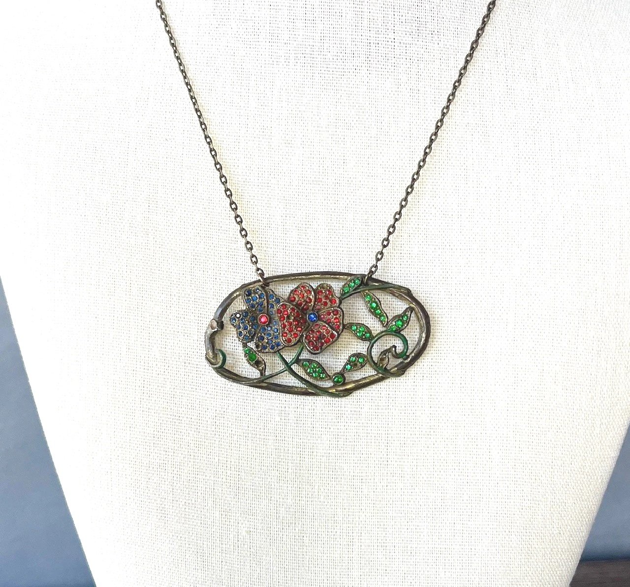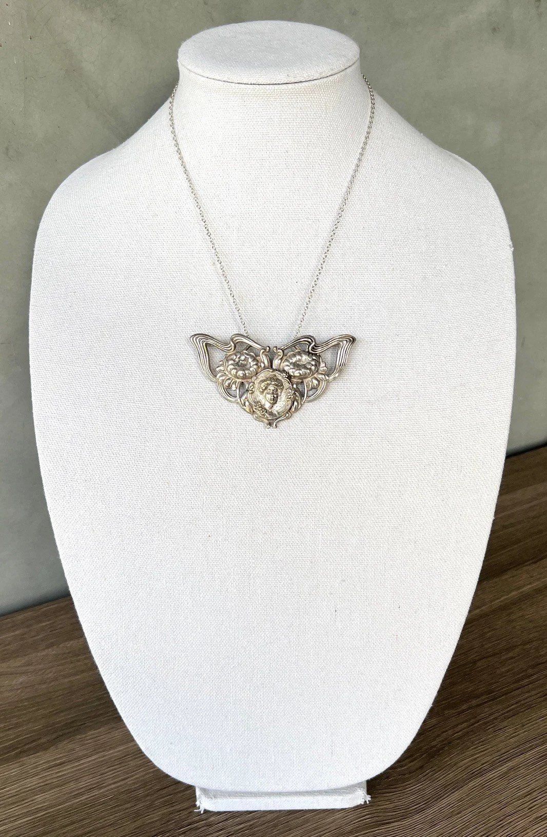 vintage art nouveau belt buckle on silver chain