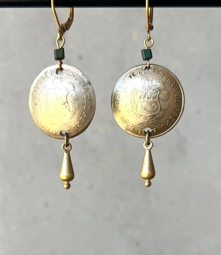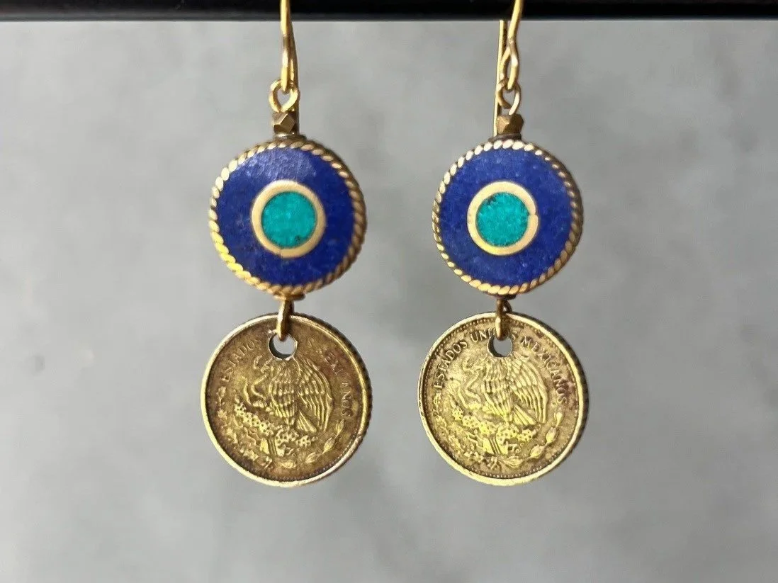mexican coins + tibetan beads