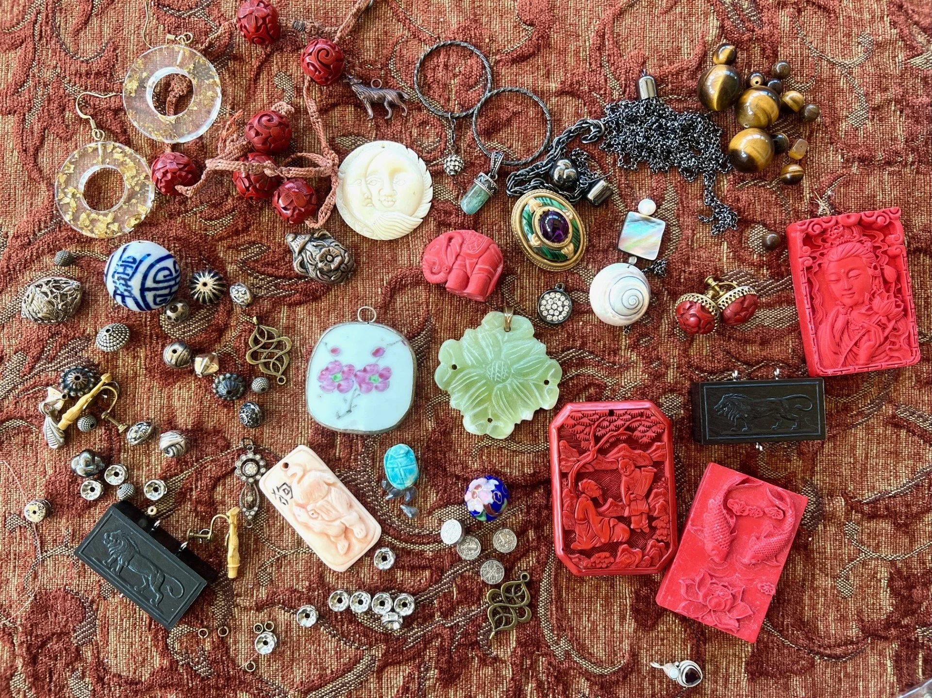 I’ve been making jewelry since high school, when I converted a tiny little room in my basement into a fledging jewelry studio. After nearly 40 years of treasure-seeking, collecting found objects from all over the world, visiting any and every garage sale, estate sale, junk shop or thrift store I can, I have amassed a vast collection of ecclectic materials from which to create inventive and unique jewelry. I love the story behind an object- love imagining the things it has seen, heard and experienced- and respect the echoes of time that my reimagined jewelry carries into its new life…