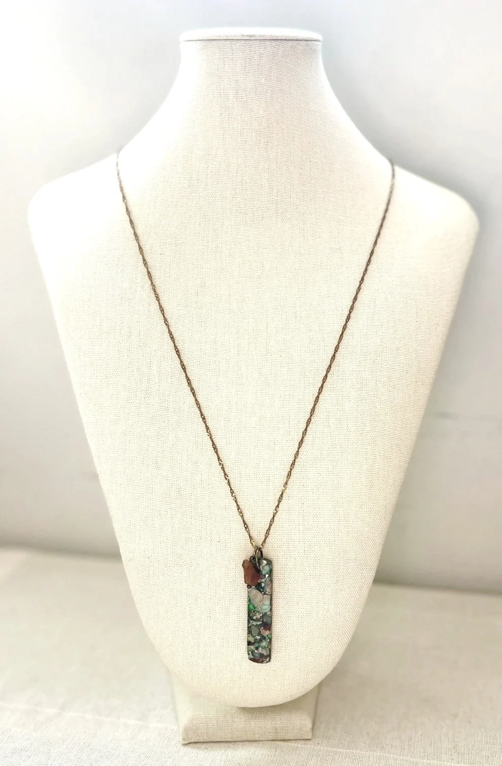 heather and her best friend met as middle school pen pals in the 80s, exchanging letters and postcards. they bonded over the PBS show "The Big Blue Marble," which featured kids around the world writing to each other and promoted intercultural exchange. heather wanted to give her dear friend several pieces of reimagined jewelry based on these connective themes.