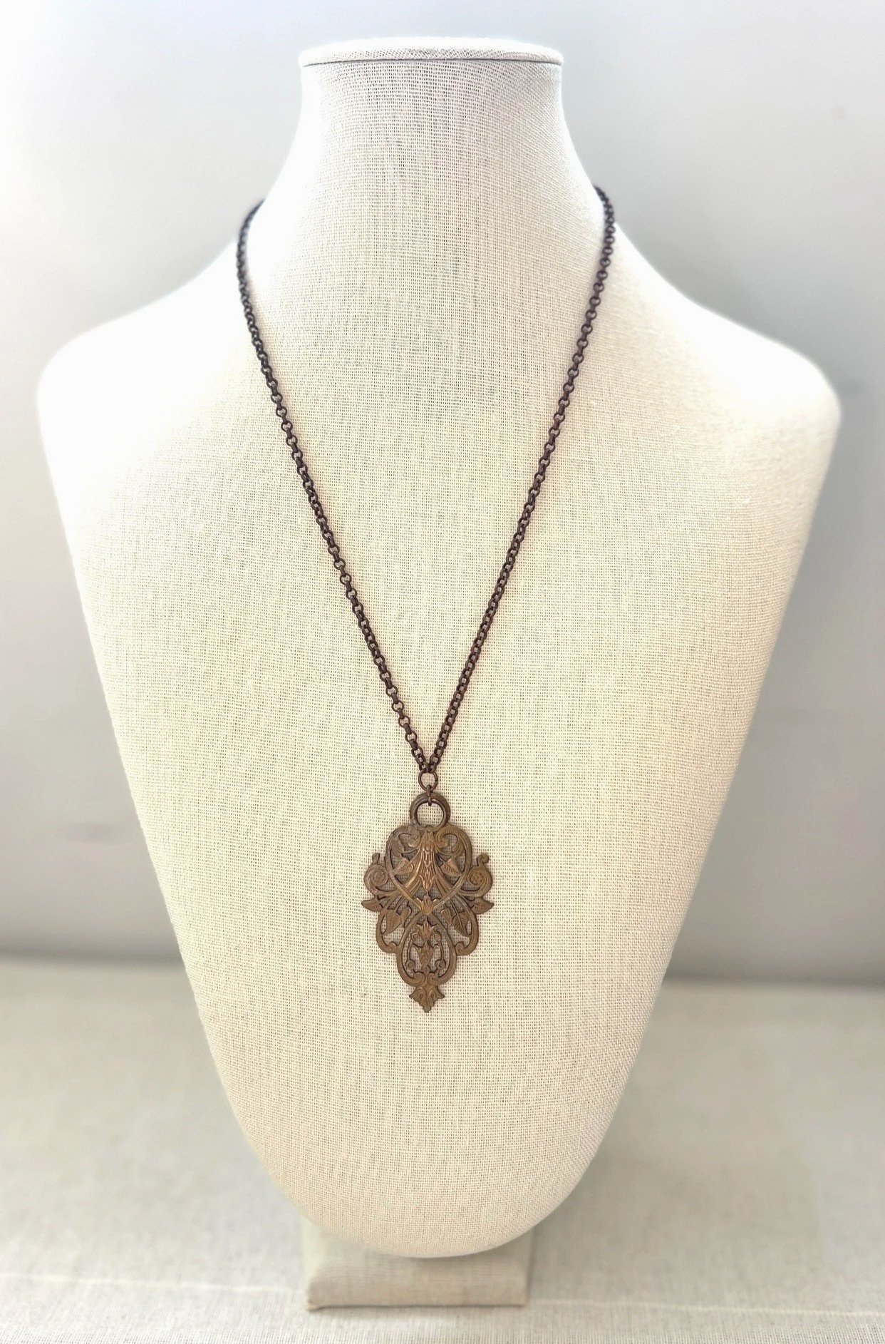 one friend loves all things art nouveau/art deco, and appreciates vintage treasures that have a quirky history and use. this antique french art nouveau belt buckle on a rustic brass chain fit the bill.